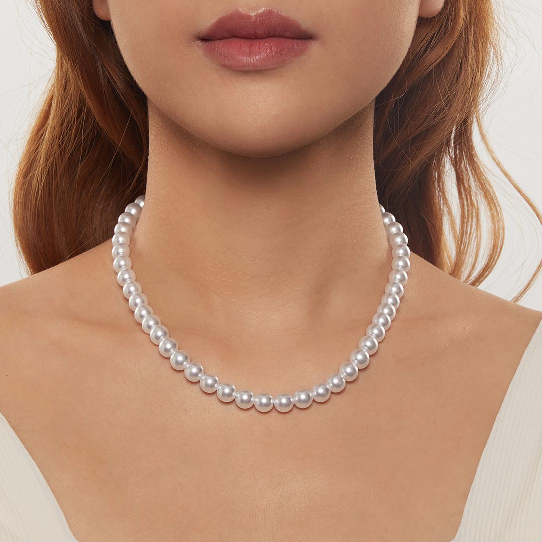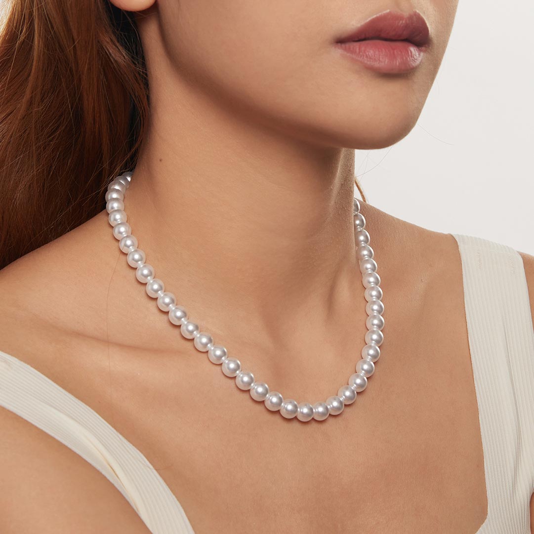 A szabályosan fűzött, 8mm méretű gyöngyök klasszikus luxusérzetet keltenek, míg az állítható ezüst kapocs kényelmes és biztonságos viseletet biztosít.
