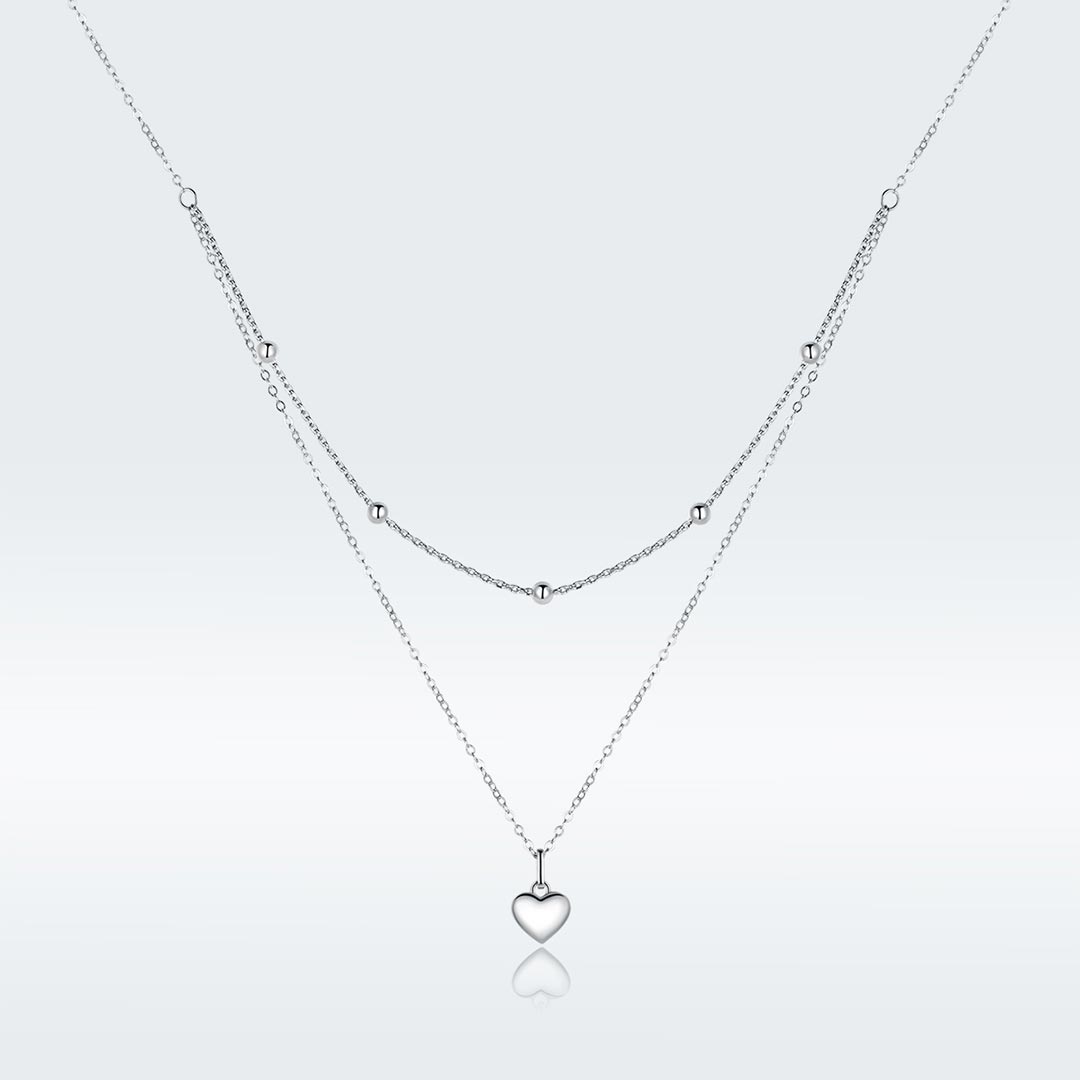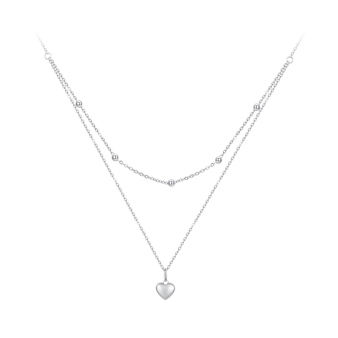 A nyaklánc két finom, egymás fölött futó ezüstláncból áll. A felső láncot apró, fényes golyócskák díszítik, amelyek minden mozdulatnál lágyan megcsillannak a bőrödön. Az alsó lánc végén egy letisztult, kicsi szív medál függ – egyszerű, mégis pont annyira feltűnő, hogy bárki észrevegye, mennyire jól áll neked.