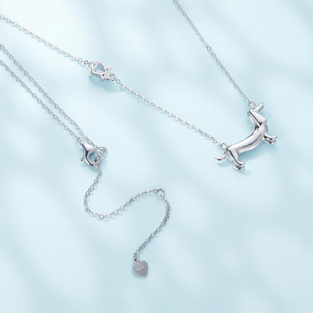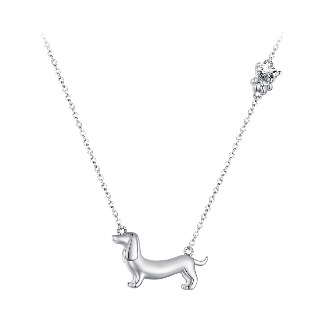 Letisztult, 925-ös sterling ezüst nyaklánc bájos tacskó motívummal.